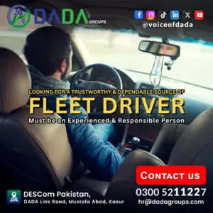 DADA Water Tech & Chem Pvt. Ltd. is looking for a reliable and experienced Car Driver to provide safe, timely, and professional transportation services for company staff and management.